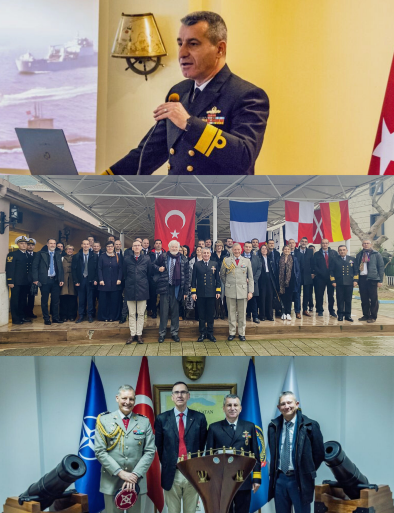 Après ce début passionnant et un déjeuner dans un restaurant typique de la vieille ville, la journée s’est poursuivie au sur la rive orientale du Bosphore, puisque la session a été reçue dans les quartiers du commandement de la marine turque en charge des détroits et de la mer Noire. Accueillis par l’amiral commandant cette structure et par tout son état-major, les auditrices et les auditeurs ont entendu deux exposés. Le premier portait sur la marine turque en général : organisation, équipements, missions, enjeux et défis tandis que le second a développé les aspects liés à la sécurité dans les détroits et en mer Noire. Les autorités turques ont montré avec quel sérieux la Convention de Montreux est appliquée par la Turquie et, s’agissant de la sécurité en mer Noire, tous les efforts que porte la Turquie pour mettre en place des outils de coopération efficaces que ce soit en coopération avec les pays voisins ou dans le cadre de l’OTAN. La Turquie en tant que membre influent de l’OTAN reste en effet un acteur stratégique important et son positionnement à l’égard des crises et des conflits régionaux reste déterminant pour l’Alliance atlantique.
