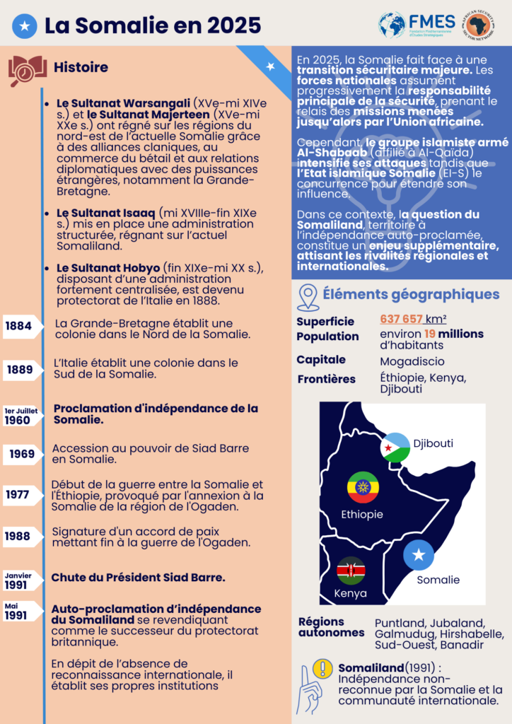 Cette nouvelle infographie offre donc une vision synthétique des dynamiques politiques, sécuritaires, économiques et sociales qui façonnent aujourd’hui la Somalie, entre pressions extérieures, rivalités internes et recompositions régionales.