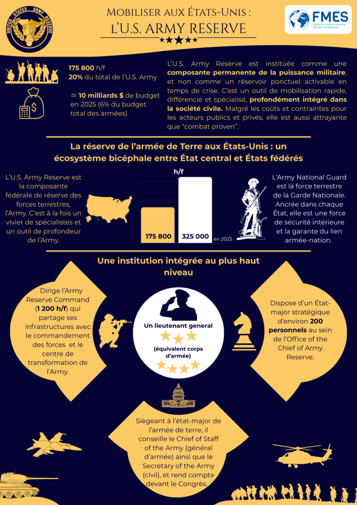 L’U.S. Army Reserve est instituée comme une composante permanente de la puissance militaire, et non comme un réservoir ponctuel activable en temps de crise comme la réserve française. C’est un outil de mobilisation rapide, différencié et spécialisé, profondément intégré dans la société civile. La force de l’U.S. Army Reserve réside dans sa capacité à capter et à conserver l’expertise stratégique grâce à un système souple et attractif. Cela passe par une nécessaire hiérarchisation entre les réservistes, rendue possible par l’acceptation sociale de différences selon la compétence. La réserve intervient comme filtre et détecteur de talents au profit de la force opérationnelle. Le système se distingue aussi par la manière dont il impose des contraintes fortes aux réservistes ou à leurs employeurs, sans que celles-ci ne soient perçues comme telles. La récente réintroduction du service militaire volontaire en France peut s’inspirer de cette polyvalence pour mobiliser les talents critiques.